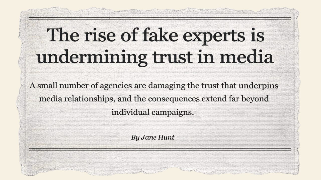 CIPR Influence recently reported on a phenomenon - one that PR practitioners and journalists have been privately grumbling about for a while. Press Gazette went further, conducting research that identified fake experts across five news brands and publishing a spreadsheet naming them publicly.