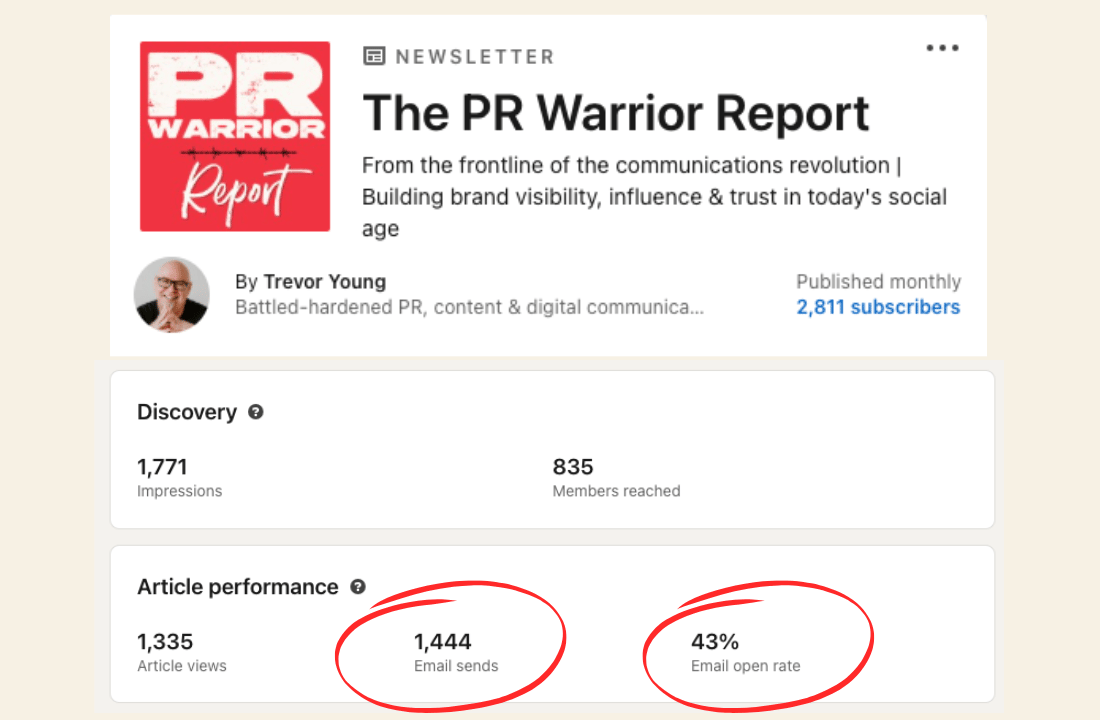 Subscribers also receive a notification within LinkedIn itself, PLUS the newsletter promotional post (which you have to do upon publishing an edition of your newsletter) may also appear in people’s LinkedIn feeds. This provides you with ‘three bites of the distribution cherry’ - always handy when getting your content in front of people is the challenge many of us face.