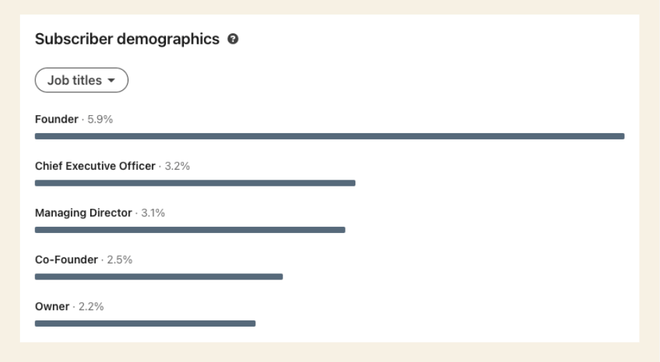 Oh, and don’t forget that you get the chance to learn a bit more about your subscribers. For example, in the graphic below, you can see that many of the types of people who subscribe to my PR Warrior Report newsletter are founders of and/or run businesses - my exact target audience!