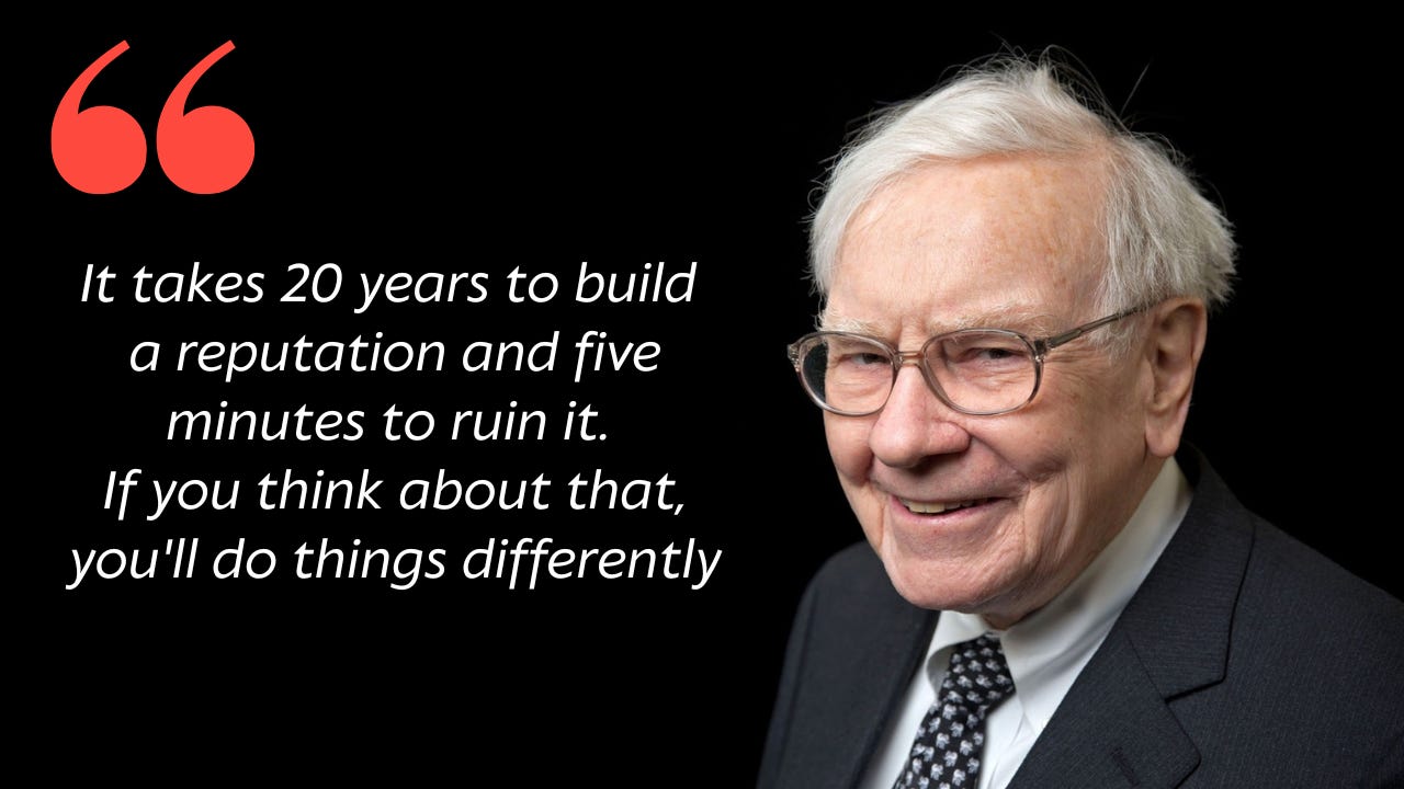 “It takes 20 years to build a reputation and five minutes to ruin it. If you think about that, you’ll do things differently.”
